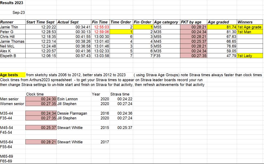 If you want to get an age graded % score – email me your Date of Birth – so I can add it to the spreadsheet